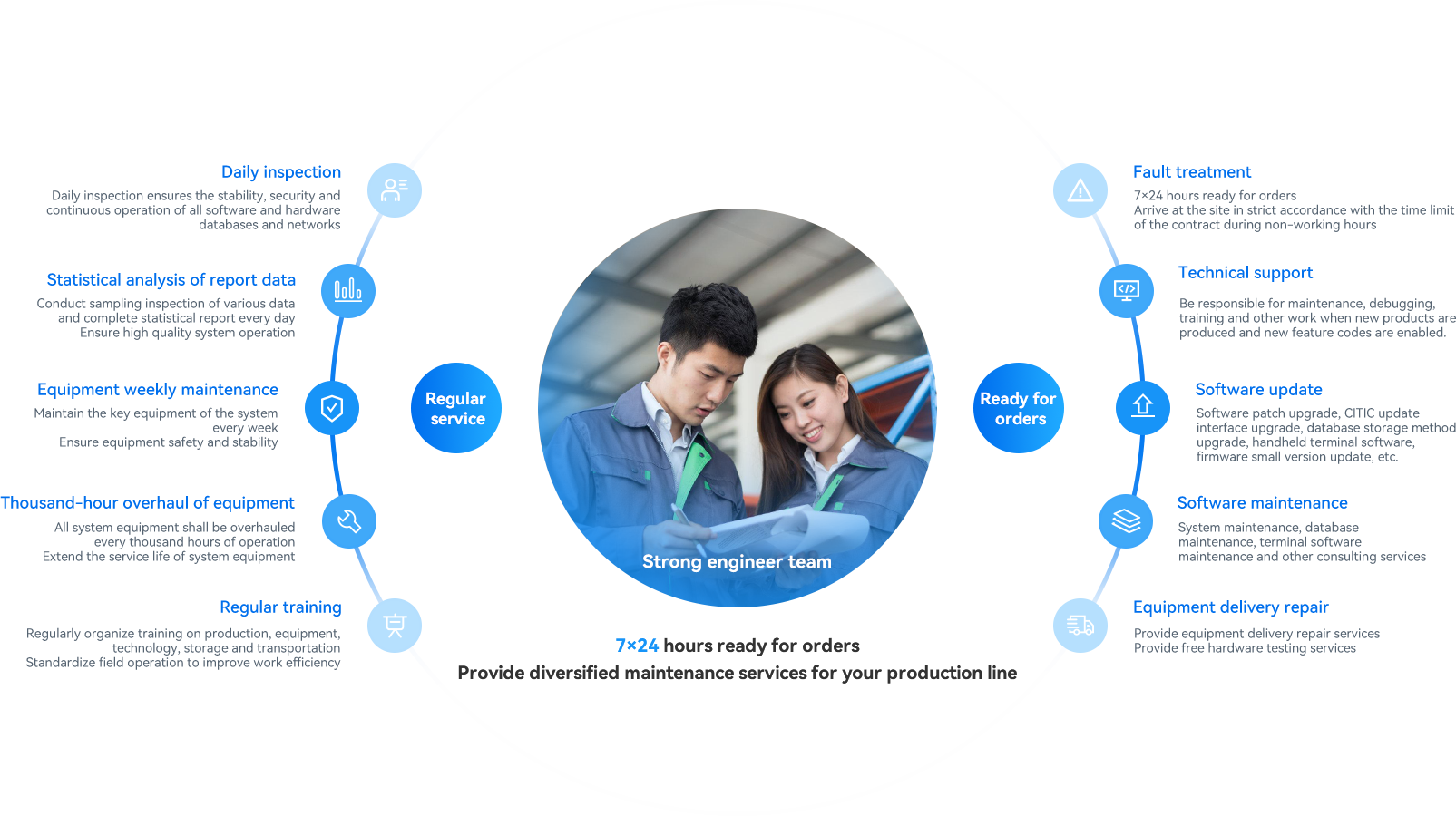 We have a core R&D and operation team of more than 120 people. At the same time, 150+after-sales personnel are distributed throughout the country to provide customers with comprehensive pre-sale and after-sales technical services.