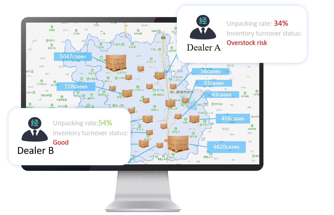By setting the warning thresholds in low and peak seasons and combining the dealer's unpacking rate and the previous inventory consumption rate, and the big data integration analysis of the dealer's inventory status, help dealers to develop scientific goods supply plans based on the data analysis results, and reduce the channeling risk from the source.